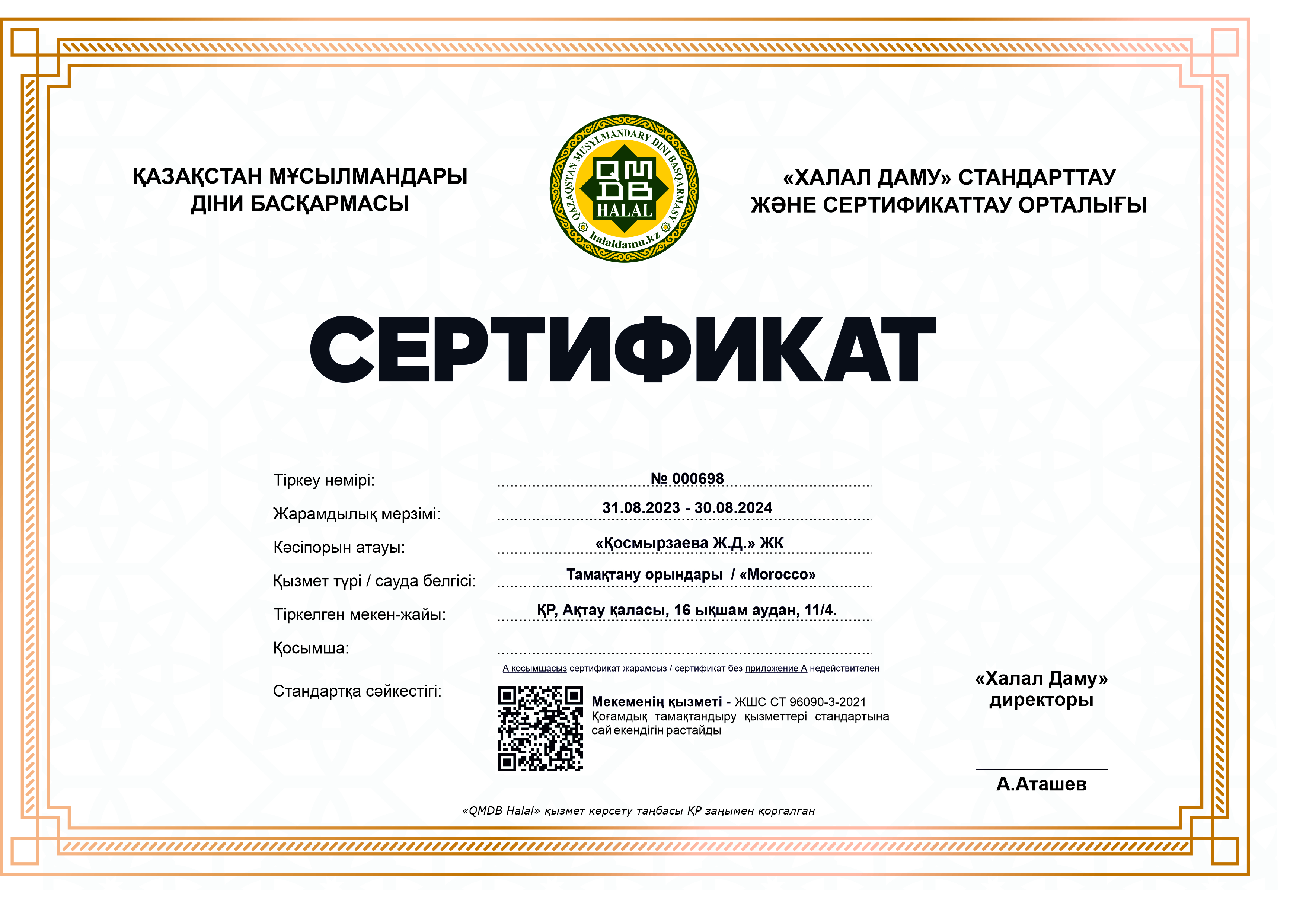 Сертфикат действителен до 30 Ağustos 2024