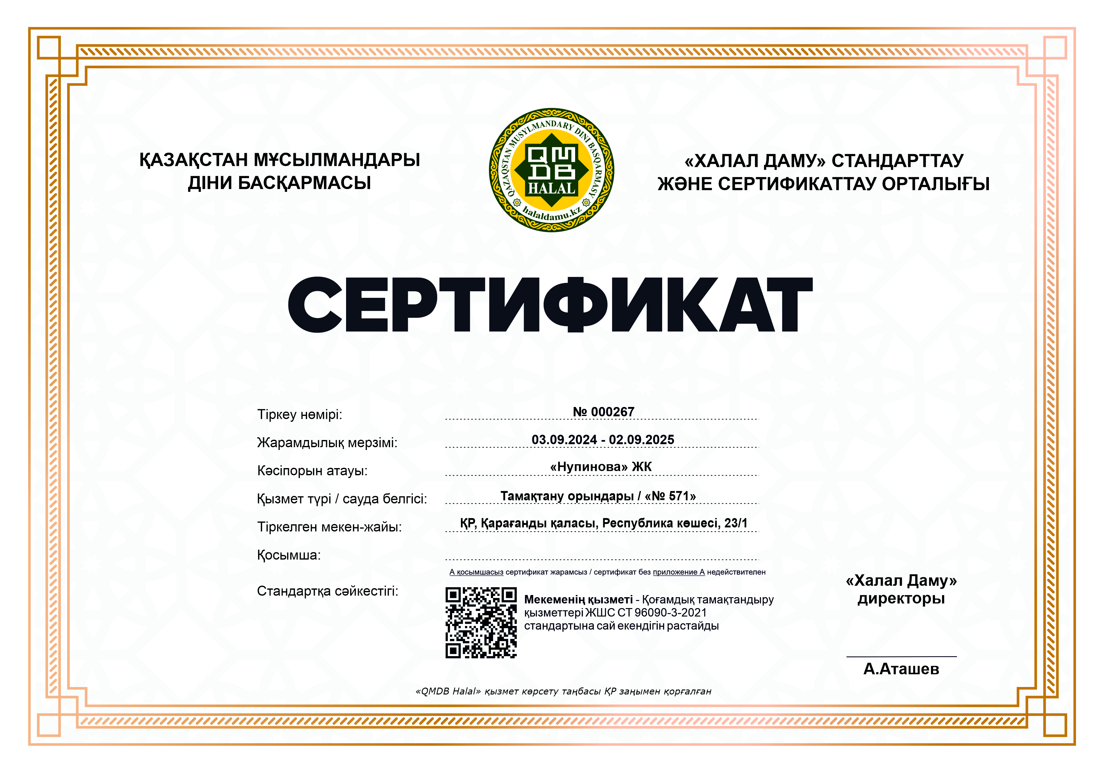 Сертфикат действителен до 02 Eylül 2025