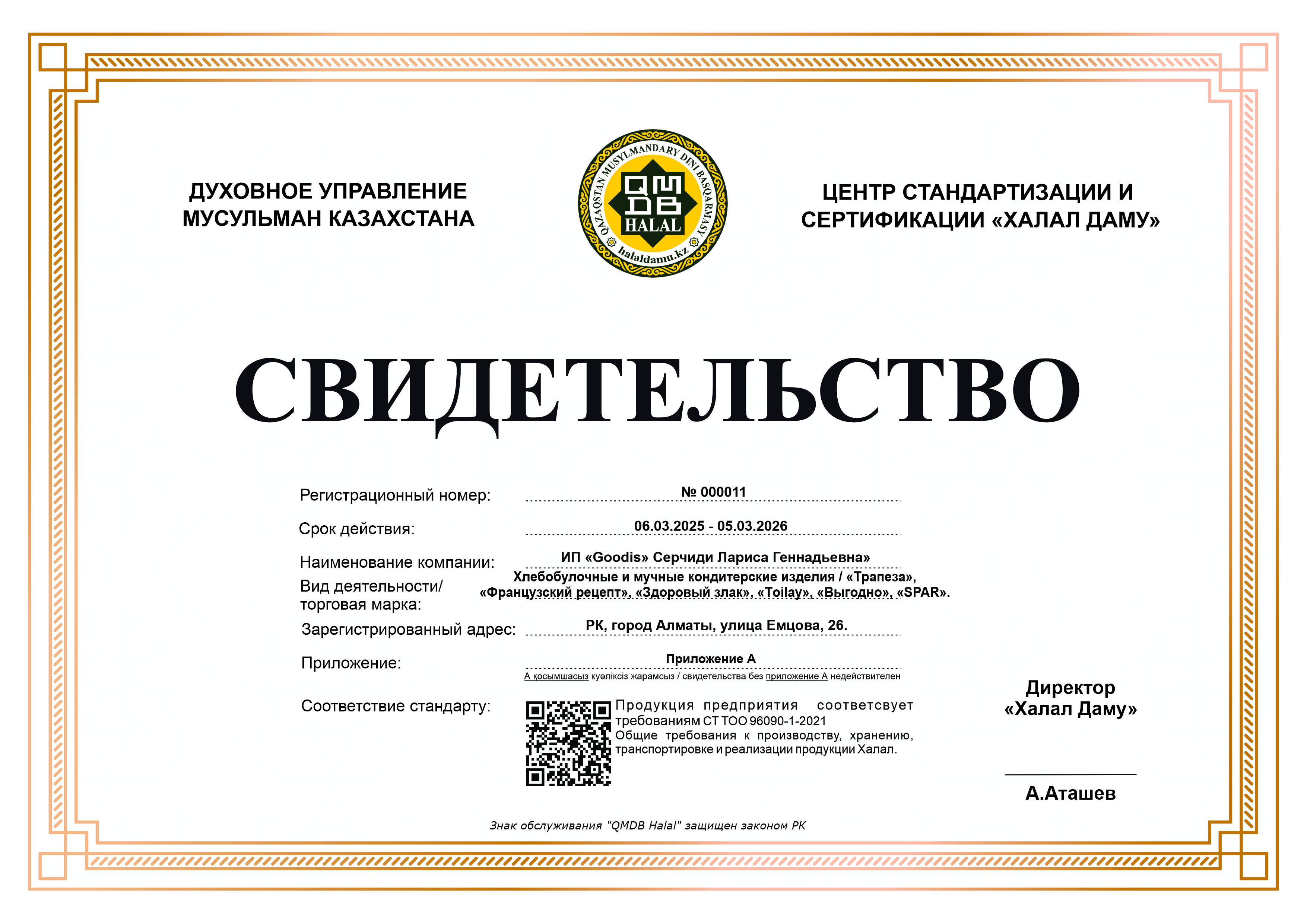 Сертфикат действителен до 05 Mart 2026