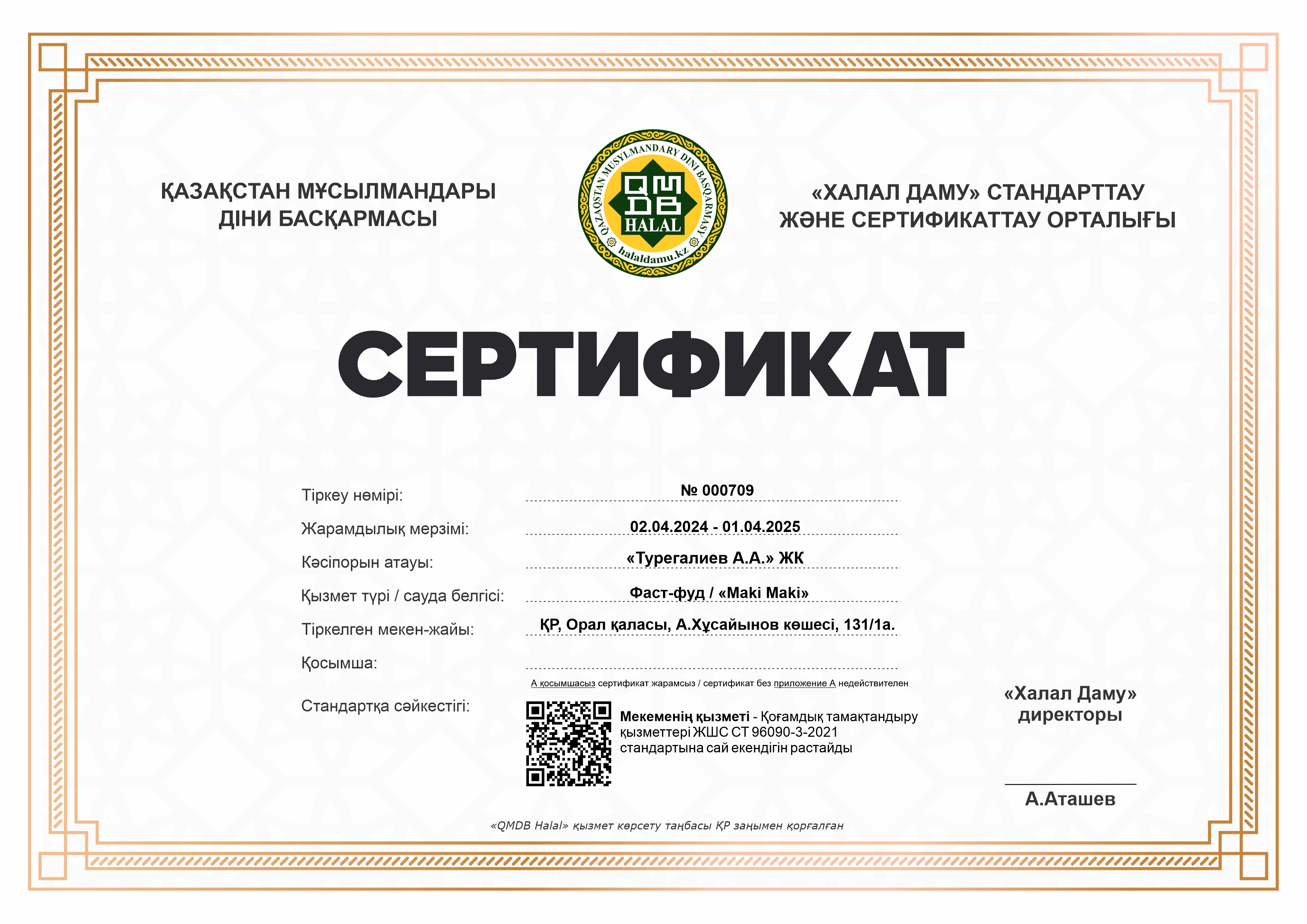 Сертфикат действителен до 01 Nisan 2025